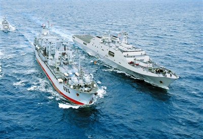 南海某海域,兩艘小山般的戰(zhàn)艦靠近、靠近,波濤在兩艦之間翻滾咆哮……海軍排水量近2萬噸的“昆侖山”兩棲船塢登陸艦與排水量3萬多噸的“青海湖”綜合補(bǔ)給艦,日前在南海深處成功實(shí)施橫向補(bǔ)給演練。