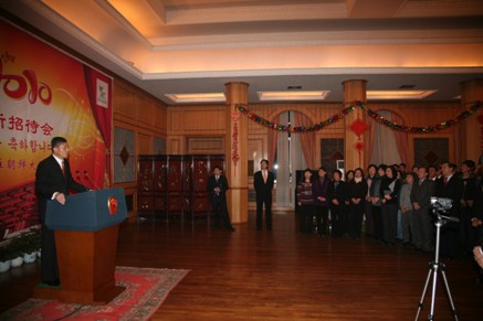 2月1日,劉曉明在華僑迎春暨告別招待會上發(fā)表講話說,在新春佳節(jié)即將到來之際,他首先代表祖國親人和中國大使館向辛勤工作、生活在朝鮮的全體華僑致以最誠摯的節(jié)日祝福。
