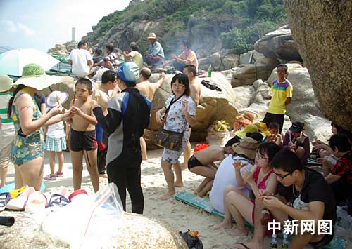 2月4日上午,執(zhí)法人員接到舉報,三亞亞龍灣海域附近的百福灣每天都有數(shù)百人前去潛水、海底觀光。但是,等到聯(lián)合執(zhí)法人員趕到時,偌大的海灘上只有五六十人在海邊淺水區(qū)或游泳、拍照、或燒烤等,潛水、海底觀光的一個也沒有發(fā)現(xiàn),除了岸邊的礁石上有數(shù)十個潛水呼吸用的“吸嘴”外,連潛水必備的器材一套也沒有發(fā)現(xiàn)。