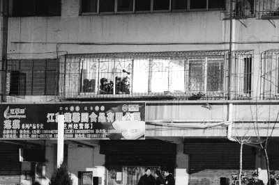在事發(fā)現(xiàn)場,記者雖然站在馬路對(duì)面,但是記者可以清楚地看到事發(fā)現(xiàn)場2樓的一切,整棟大樓唯獨(dú)2樓燈火通明,有幾名荷槍實(shí)彈的特警手持沖鋒槍在陽臺(tái)內(nèi)隨時(shí)監(jiān)視現(xiàn)場的情況,他們死死地盯著一扇綠色的防盜門。而在張?zhí)K灘市場附近的樓上,已有4名警方狙擊手隱蔽在黑暗的角落監(jiān)視著綠色的防盜門,零點(diǎn)33分至36分,“砰!砰!砰!”幾聲巨響過后,從外面看一陣陣炫目的白光閃過,很多群眾都以為是警方在試圖炸開防盜門,伴隨著巨響而發(fā)出驚呼,大家都在為警察捏了一把汗,因?yàn)槌謽尫缸锵右扇撕苡锌赡芫筒卦诜孔永锩,凌?點(diǎn)40分左右,警方終于將防盜門打開并成功突入房內(nèi),卻發(fā)現(xiàn)犯罪分子已經(jīng)逃逸。