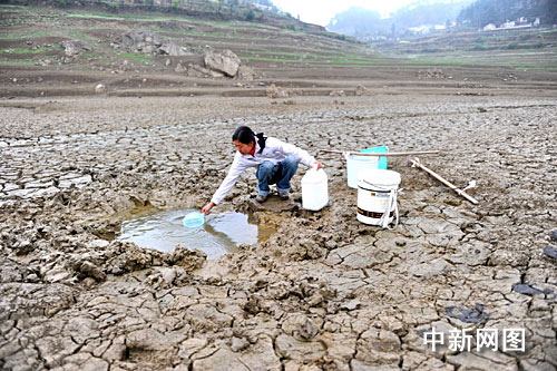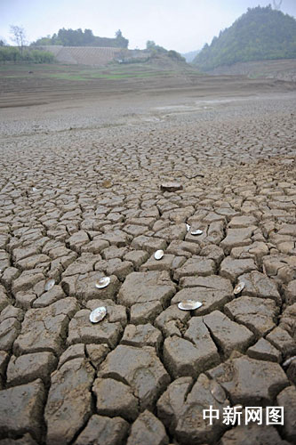 中新網(wǎng)貴陽3月24日電 題:貴州開陽縣干旱災區(qū)見聞:飲用水源庫底水族成“化石”