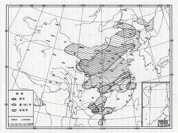 2000年,我國大部地區(qū)降水偏少,出現(xiàn)大范圍干旱。就季節(jié)而言,干旱主要發(fā)生在春、夏季;就地區(qū)而言,北方受旱范圍廣,干旱時間長,旱情重,而南方受旱范圍小,干旱時間短,旱情也較輕。據(jù)有關(guān)部門統(tǒng)計,全國累計受旱面積4054萬公頃,成災(zāi)面積2678萬公頃,與1971年以來-的平均值相比,均顯著偏多,屬干旱嚴(yán)重年份。其中受旱面積較大或旱情較重的有河北、山西、內(nèi)蒙古、山東、陜西、甘肅、寧夏、遼寧、吉林、黑龍江、湖北、安徽、江西等省區(qū)。