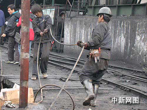 剛才人們看到,在井口仍有部份家屬及礦工在焦急等待親人和工友。