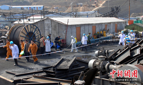 今日上午,記者在事故現(xiàn)場(chǎng)看到已經(jīng)有衛(wèi)生人員對(duì)事故現(xiàn)場(chǎng)進(jìn)行消毒。同時(shí),記者從事故現(xiàn)場(chǎng)一位救援人員了解到,井下仍然還有大量積水。