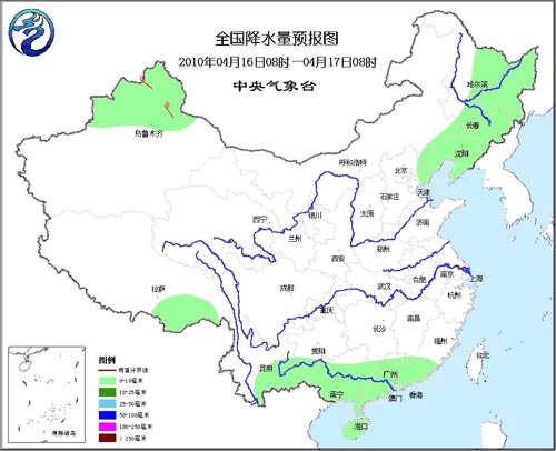17日08時(shí)至18日08時(shí),新疆西部、內(nèi)蒙古東南部、東北地區(qū)南部有小到中雪(雨);西藏東南部、四川盆地東部、江南大部、華南中東部等地的部分地區(qū)有小到中雨。