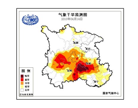中新網(wǎng)4月14日電 中央氣象臺(tái)今日18時(shí)繼續(xù)發(fā)布干旱黃色預(yù)警:據(jù)監(jiān)測(cè),云南中北部和東部、貴州西部和南部、廣西西北部、川西高原南部仍存在中度以上氣象干旱。未來三天,貴州西南部、廣西西北部、云南東部有一般不足5毫米的降雨,云南東南部、廣西東部的局部地區(qū)一般有中到大雨(10~25毫米),川西高原南部基本無雨。西南主要旱區(qū)大部地區(qū)氣象干旱仍將持續(xù)。