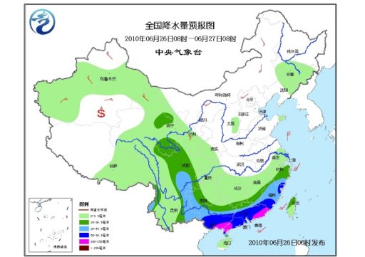 中央氣象臺今晨繼續(xù)發(fā)布暴雨藍色預(yù)警:預(yù)計,6月26日08時到6月27日08時,浙江南部、江西南部、福建大部、廣東大部、廣西中南部有大雨或暴雨,局地有大暴雨,上述部分地區(qū)并伴有短時雷雨大風(fēng)等強對流天氣。請當?shù)乩^續(xù)注意城市和農(nóng)田的排澇;山區(qū)的朋友應(yīng)加強地質(zhì)災(zāi)害的防御。