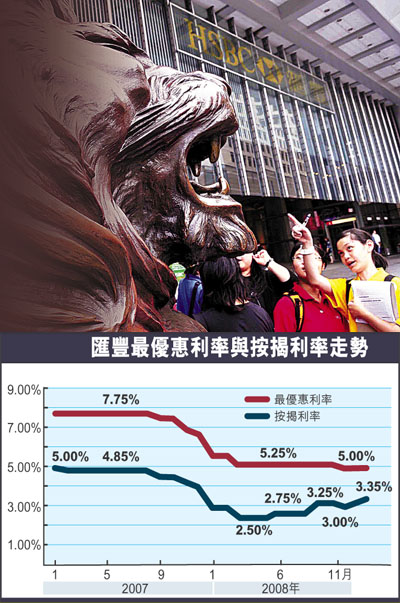 在11月初匯豐帶頭減最優(yōu)惠利率25點(diǎn)子(100點(diǎn)子=1厘)后,雖然大部分銀行于數(shù)日內(nèi)都跟隨減息,但其后不久,不少銀行又偷偷將新造按息上調(diào)0.25厘至0.5厘。如渣打香港早前就大幅上調(diào)新造按息1厘,實(shí)際息率為3.75厘至4厘。