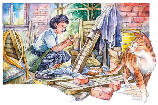 那天一放學(xué),我迫不及待的帶著我的狗,到夢里出現(xiàn)的工地,結(jié)果真的在一間空屋角落,發(fā)現(xiàn)三只小貓,它們跟母老虎一樣,都是虎斑紋的毛,可惜其中兩只已經(jīng)死了。