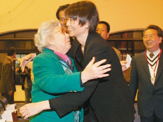 周美青與當(dāng)年教她的老師熱情擁抱。(來源:臺(tái)灣《聯(lián)合報(bào)》)