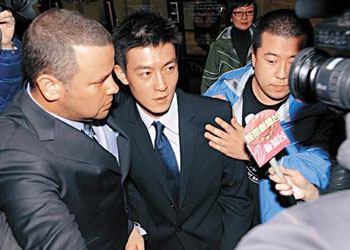 陳冠希在當(dāng)?shù)貢r(shí)間早上約10時(shí)左右,穿一身黑色西裝出庭。他在加國(guó)的媽媽、經(jīng)理人及多個(gè)保安陪同旁聽。進(jìn)入法庭期間,有一個(gè)身形龐大的男子,惡形惡相指令原本坐在頭一排的傳媒讓座給他們,加上聘請(qǐng)大批保安在法庭外把守,顯得霸氣十足。
