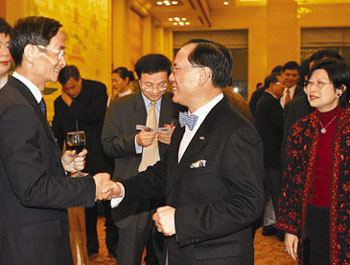 香港特首曾蔭權(quán)在致辭時(shí)指出,香港得到中央的鼎力支持,配合全港市民的努力,當(dāng)外圍情況回穩(wěn),香港相信會是最先走出衰退的地方之一!拔覒┱埜魑蝗舜蟠怼⒄䥇f(xié)委員全力支持特區(qū)政府,同心攜手,克服困難!