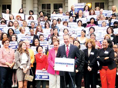 12日下午逾百位各族裔婦女代表云集市府為史樹德造勢,除了市議長柯魁英(Christine C. Quinn)與多位女性政客到來,華埠市議員陳倩雯、還有美東聯(lián)成公所的十多位婦女會員們均站臺。她們力挺史樹德,并解釋為何沒有支持同是女性的韋嘉蓮。