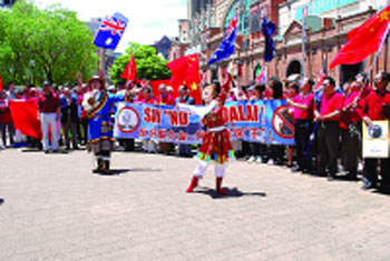 中新網(wǎng)12月3日電 由澳洲中國和平統(tǒng)一促進會,澳洲華人團體協(xié)會,澳洲潮州同鄉(xiāng)會,澳洲福建會館,悉尼中國和平統(tǒng)一促進會,澳華文聯(lián),澳洲中華青年總會等華人團體聯(lián)合發(fā)起的,《向達賴說不!反分裂大會》2日上午在悉尼娛樂中心前廣場舉行,近三百人參加此活動。悉尼文藝界代表在會上表演了西藏民族舞蹈,大家齊聲唱中華56民族是一家。