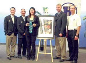 在坎伯學(xué)院20日專門為葉惠恩舉行的頒獎(jiǎng)儀式上,葉惠恩從安省學(xué)院運(yùn)動(dòng)協(xié)會(huì)(OCAA)行政總監(jiān)Blair Webster的手中,接過(guò)協(xié)會(huì)每年僅頒發(fā)給一名女運(yùn)動(dòng)員和一名男運(yùn)動(dòng)員的年度運(yùn)動(dòng)員獎(jiǎng)項(xiàng)。據(jù)坎伯學(xué)院運(yùn)動(dòng)體育總監(jiān)Doug Fox介紹,本獎(jiǎng)項(xiàng)是很少由新生獲得,葉惠恩也是該校首個(gè)獲此獎(jiǎng)項(xiàng)的新生。