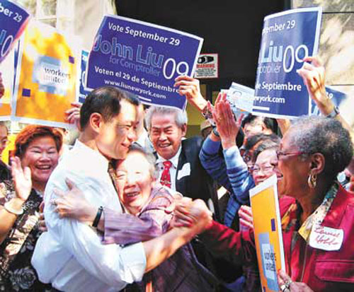 中新網9月30日電 據美國《世界日報》報道,9月29日,紐約市舉行民主黨初選重選(run-off),民主黨選民需在劉醇逸和葉斯基(David Yassky,選票譯名戴維‧亞斯克伊)之間選出一位主計長候選人,并在迪博拉修(Bill de Blasio,選票譯名白思豪)和格林(Mark Green,選票譯名為馬克‧古云)之間選出一位公益維護人候選人,讓他們有資格代表民主黨參加11月的全市普選!