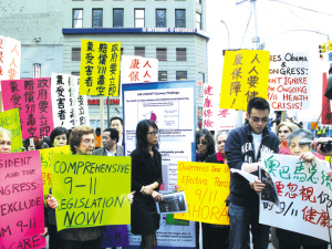 當(dāng)天有不少華人職工會(huì)的會(huì)員到場(chǎng)聲援,華人職工會(huì)也是超越姐妹樓聯(lián)網(wǎng)的組成者之一,居住在下東城的伍嬸代表發(fā)言,她說(shuō)過(guò)去8年來(lái)華埠及下城的居民健康仍然被忽略,受到各種疾病的折磨,她與孫女于911后受毒空氣影響,她的肺部出現(xiàn)黑點(diǎn)、孫女患上哮喘,然而政府卻一直不肯正視有關(guān)問(wèn)題。