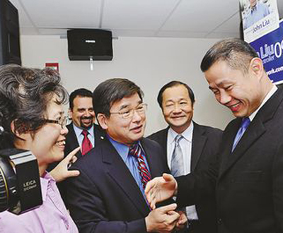 中新網(wǎng)11月6日電 據(jù)美國《世界日報(bào)》報(bào)道,忙于謝票的紐約第20選區(qū)現(xiàn)任市議員、候任市主計(jì)長華裔劉醇逸和候任華裔市議員顧雅明4日早上在華策會福壽老人中心喜相逢,兩人熱情擁抱,互相祝賀創(chuàng)造歷史,并表示兩人將馬上開始著手交接工作,使法拉盛民眾的服務(wù)不因?yàn)槭凶h員的更替而中斷。