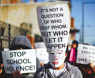 南費(fèi)城高中3日再次發(fā)生非洲裔學(xué)生集體攻擊華裔學(xué)生事件,造成26名學(xué)生受傷、其中七人須送醫(yī)治療,傷者多為來(lái)自中國(guó)福州的新移民子弟。此事件隨著華裔學(xué)生本周發(fā)起罷課行動(dòng)升高抗?fàn),引發(fā)廣泛的關(guān)注,連續(xù)多日成為主流媒體的焦點(diǎn)新聞,費(fèi)城市校改會(huì)9日下午特別舉辦公聽(tīng)會(huì)響應(yīng)小區(qū)的關(guān)切,保證將加派警力維護(hù)校園安全。