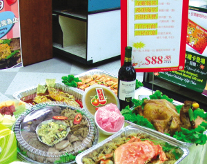 經(jīng)濟(jì)不好,團(tuán)年飯改在家里吃吧!大華超市公關(guān)經(jīng)理曹其崢表示,他們根據(jù)市場(chǎng)的判斷,認(rèn)為許多華裔人士會(huì)追求經(jīng)濟(jì)實(shí)惠的家庭套餐,如果可以讓他們?cè)诩依锞涂梢宰聿宛^的美食,將會(huì)受歡迎。因此,他們推出了力求薄利多銷(xiāo),“百元有找”的新春套餐。新春套餐以“金雞報(bào)喜”、“鴻運(yùn)滿堂”、“招財(cái)進(jìn)寶”、“年年有余”等吉祥話命名,包括全雞、大蝦、肉蟹、黃金魚(yú)及魯菜拼盤(pán),另外贈(zèng)送紅酒、水果盤(pán)、發(fā)糕及年糕,全部套餐只要88.88元。