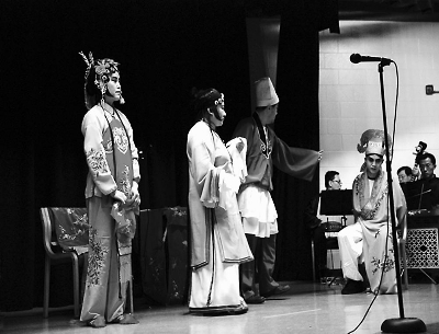 演員出色的表演、節(jié)目單背面中英文對(duì)照的劇情介紹和臺(tái)詞中偶爾夾雜的“Policemen!”、“Oh,my God!”之類的英語,讓大家都看懂了。原來曾擔(dān)心觀眾會(huì)聽不慣,結(jié)果每一段唱腔之后都獲得滿堂彩。