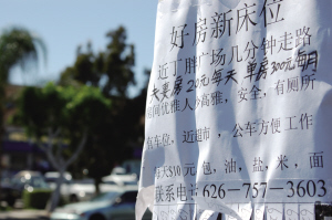 “家庭小旅館”房東最忌諱的是房客使用“家庭小旅館”的地址作通信地址,這樣會暴露住所內(nèi)入住人數(shù),也會給國稅局留下追繳稅款的憑證。到“家庭小旅館”租床位的人,多數(shù)無車,這便鼓勵了無照經(jīng)營的出租車行業(yè)。在“家庭小旅館”周圍商業(yè)區(qū)的電線桿、留言板上到處可看到“地下的哥”留的字條或名片。有些“的哥”為了讓自己的名字被記住還動了不少腦筋,如有人自稱“沈陽飛姐”,此人寫在名片上的廣告是“想回家,找飛姐”。蒙特利公園市附近常租用“地下出租車”的,不少人都知道有位專門安排住宿、接送客人的“飛姐”。