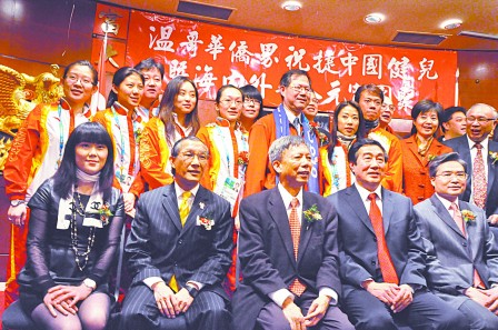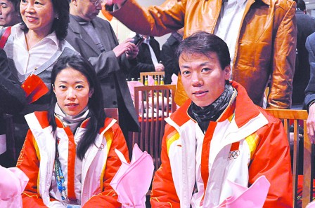 500多名僑界代表當(dāng)日共同守候功臣們的到來,奪金的花樣滑冰雙人滑選手申雪和趙宏博剛到場(chǎng),便受到英雄和明星式的待遇,從進(jìn)場(chǎng)到坐下便好像“手握不完、相影不完、名簽不完!