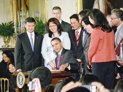 奧巴馬說,談到亞太裔就是談他的家人,他的妹妹瑪亞(Maya Soetoro-Ng)、妹婿吳加儒(Konrad Ng),以及他們的孩子都是亞太裔。瑪亞有華人血統(tǒng),吳加儒是加拿大華裔。奧巴馬也特別贊揚他的三個亞太裔閣員華裔的駱家輝、能源部長朱棣文、日裔退伍軍人事務(wù)部部長新關(guān),以及在伊拉克戰(zhàn)爭失去雙腿的陸軍直升機飛行員、具有華裔血統(tǒng)的退伍軍人部助理部長譚美.達克沃斯(Tammy Duckworth)。