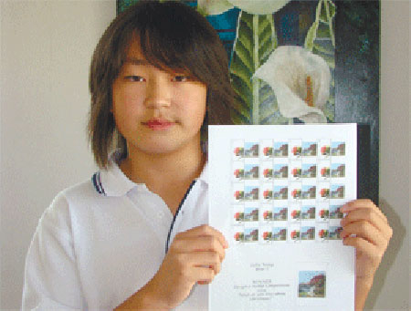 中新網(wǎng)11月20日電 據(jù)新西蘭《中文先驅(qū)報(bào)》報(bào)道,近日,新西蘭郵政局正式發(fā)行2009年圣誕節(jié)郵票。在過去的49年里,每年圣誕節(jié)來到之前,郵政局都要發(fā)行一套特意設(shè)計(jì)的圣誕郵票,借助小小的郵票,為圣誕節(jié)涂上一抹喜慶的色彩。這不但是官方慶祝圣誕節(jié)的舉措之一,也是新西蘭文化藝術(shù)界的盛事。讓華人驕傲的是,在今年的圣誕節(jié)郵票設(shè)計(jì)大賽中,11歲的華裔小子王若然(Felix Wang)“藝”高一籌,從14200多名參賽者中脫穎而出,榮膺郵票設(shè)計(jì)大獎(jiǎng)。