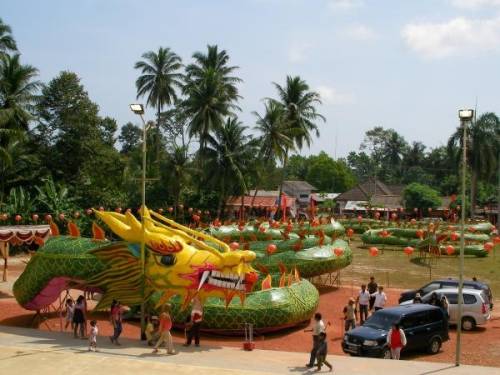 當晚約有數(shù)千民眾來到邦加島的北部城市烈港的Kampung Kenanga(Chit Fun),進入當?shù)豗PK學校的廣場,觀看熱烈的舞獅表演。該長龍展示,同時長龍身上敷貼了2萬個小年糕。