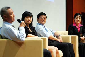 三位主講者分別是軟件公司Managed Objects亞太總經(jīng)理蔡卓麟、律師鐘庭輝和國(guó)大金融學(xué)助理教授張偉娜博士,他們根據(jù)各自領(lǐng)域的課題,分別就新加坡工作文化、法律問(wèn)題和學(xué)術(shù)氛圍發(fā)表演講。