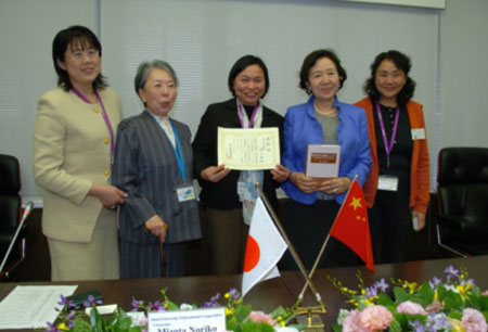 城西大學(xué)理事長(zhǎng)兼城西國(guó)際大學(xué)校長(zhǎng)水田宗子、正在日本訪問的中國(guó)華南師范大學(xué)政治與行政學(xué)院博士生導(dǎo)師王宏維、城西國(guó)際大學(xué)教授矢木公子、日本僑報(bào)社社長(zhǎng)張景子等出席授獎(jiǎng)儀式并向讀者推薦《現(xiàn)代中國(guó)人口移動(dòng)與社會(huì)性差》。