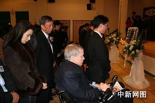 加拿大三級政府代表參加追思會,圖為溫哥華市長蘇利文等政要為肥姐默哀。中新社記者 呂振亞 攝