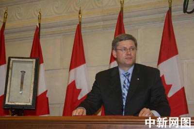 資料圖片:渥太華當(dāng)?shù)貢r間二零零六年六月二十二日下午三時,加拿大總理斯蒂芬·哈珀在加議會發(fā)表正式聲明,代表政府就人頭稅問題向全加華人道歉。