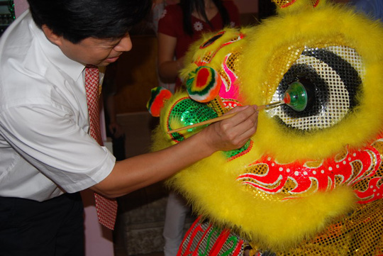 韓大使深情地回顧了新中國60年來在偉大的中國共產黨領導下,經過全國人民艱苦卓絕努力所取得的輝煌成就,認為這是中國找到了一條符合本國國情發(fā)展的道路。說這些成就來自世界各地友好國家和人民的大力支持,當然也離不開包括斐濟華僑華人在內的廣大愛國僑胞的傾力相助,還特別對旅斐華僑華人一以貫之對祖籍國發(fā)展做出的貢獻表示感謝。會上,韓大使向西區(qū)華人社團贈送了使館資助款(支票 $5,000斐元),并代表國務院僑辦向西區(qū)華聯(lián)會、臺山同鄉(xiāng)會及勞托卡中華學校贈送了南獅及紅雙喜乒乓球臺,還向每個與會僑胞贈送了國僑辦剛剛運抵的慶祝建國六十周年紀念章,并興致勃勃地為新獅點睛。