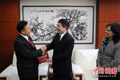 中新網(wǎng)北京3月31日電(記者 張冬冬)中國(guó)國(guó)務(wù)院僑辦副主任任啟亮今日在此間向五位第二屆華僑華人專(zhuān)業(yè)人士“杰出創(chuàng)業(yè)獎(jiǎng)”獲得者代表授予獎(jiǎng)?wù)虏㈩C發(fā)證書(shū),以褒揚(yáng)其對(duì)中國(guó)經(jīng)濟(jì)建設(shè)、科技進(jìn)步和建設(shè)創(chuàng)新型國(guó)家所做的貢獻(xiàn)。