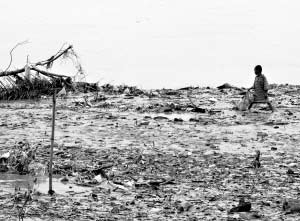 仰光一名受災(zāi)的男孩正在尋找食物