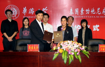 中新網(wǎng)10月27日電 據(jù)華僑大學新聞網(wǎng)消息,10月24 日上午,華僑大學與泰國素叻他尼府華萌學校在華大廈門校區(qū)簽署合作備忘錄。華僑大學華文教育辦公室主任趙明光、泰國素叻他尼府華萌學校副經(jīng)理安蒙麗分別代表雙方在合作備忘錄上簽字。出席簽字儀式的還有泰國素叻他尼府華萌學校校董涂碧泉及華僑大學華文教育辦公室工作人員。