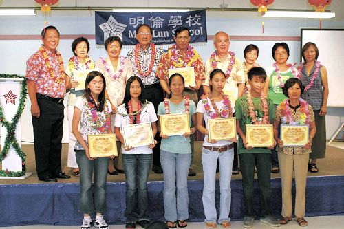 中新網9月21日電 據(jù)美國《星島日報》報道,美國夏威夷明倫學校近日召開頒獎大會,褒揚在第10屆世界華人學生作文大賽中獲獎的師生。5位學生和4位教師高興地從學校董事長方惠思手中接過由大賽組委會從中國寄來的得獎證書,全校師生也分享了他們的光榮。