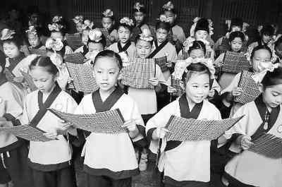 近日,蒙學讀物《弟子規(guī)》走進了北京市不少小學課堂。這只是國學熱的一場小景。穿漢服、行古禮、背儒經,越來越多的形式渴望上演一場逼真的國學普及盛況。此外,“天價國學班”光明正大地開班了,一些名校也開始成立或恢復設置國學研究院。