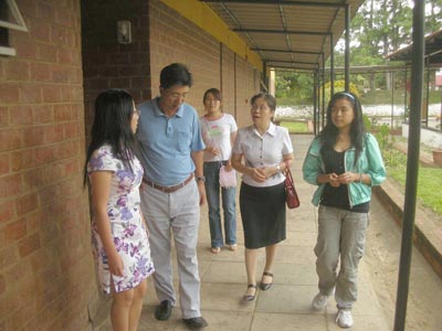 使館官員參觀了學(xué)校教學(xué)場地并與學(xué)校領(lǐng)導(dǎo)及志愿者舉行了座談,關(guān)切地詢問了志愿者的工作和生活情況。他們表示,志愿者抵贊以來,迅速適應(yīng)當?shù)丨h(huán)境,工作態(tài)度認真負責,在較短的時間內(nèi)以出色的教學(xué)表現(xiàn)得到了學(xué)校和學(xué)生的高度評價,希望她們再接再厲,為在贊比亞弘揚中國文化和漢語語言做出貢獻。會后,使館官員還向志愿者贈送了生活慰問品。