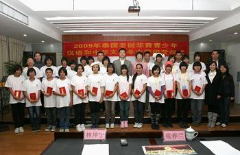 1月3日,由中國(guó)海外交流協(xié)會(huì)主辦、廣西海外交流協(xié)會(huì)協(xié)辦、廣西華僑學(xué)校承辦的“2009年泰國(guó)老撾華裔青少年漢語和中華文化冬令營(yíng)”在南寧閉營(yíng)。97名來自14所不同學(xué)校、社團(tuán)的泰國(guó)老撾華裔青少年在歡聲笑語中結(jié)束了為期12天的冬令營(yíng)活動(dòng)。(廣西華僑學(xué)校/蔣光朝 攝)