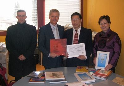 中新網(wǎng)1月27日電 據(jù)中國(guó)外交部網(wǎng)站消息,1月23日,駐馬賽總領(lǐng)館總領(lǐng)事宋炳林向國(guó)際熱核聚變實(shí)驗(yàn)堆組織(ITER)的馬諾思克國(guó)際學(xué)校校長(zhǎng)克萊芒贈(zèng)送了一批中文書籍。