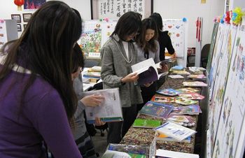 經(jīng)過立命館孔子學(xué)院的老師、活動相關(guān)工作人員和志愿者的精心籌劃與布置,設(shè)立在立命館孔子學(xué)院教學(xué)樓內(nèi)的展廳煥然一新。展出的圖書既有漢語教材及中華文化類的圖書,也有音像類材料和漢語水平考試輔導(dǎo)用書。值得一提的是,本次教材展特別把兒童漢語類圖書作為一個重要主題,包括各類兒童漢語教材及漢語插圖本。本次書展的另一個亮點是多語種版的漢語教學(xué)有聲掛圖,精心挑選的21張掛圖懸掛在展廳內(nèi),是書展中最具科技含量的展品。