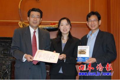 中新網(wǎng)4月16日電 4月16日下午,中國人民對(duì)外友好協(xié)會(huì)副會(huì)長兼中日友好協(xié)會(huì)副會(huì)長井頓泉,在北京接受了日本僑報(bào)社日中交流研究所所長段躍中的訪問,并為該社主辦的“日本人漢語作文大賽”一等獎(jiǎng)獲得者福森亞希頒發(fā)了首個(gè)“中日友好協(xié)會(huì)獎(jiǎng)”。