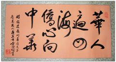 著名書法藝術(shù)家方向雄日前為華僑大學(xué)五十周年校慶題詞:“華人遍四海 僑心向中華”