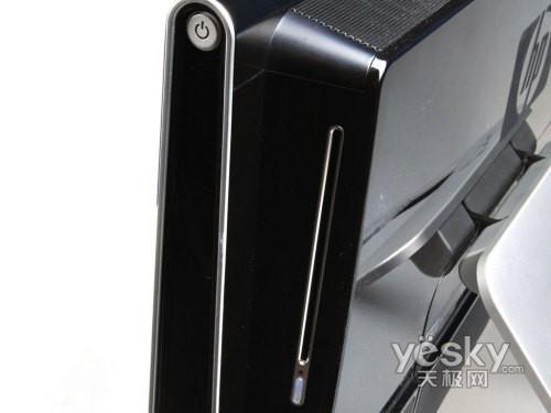 電源開關(guān)安放到了主機的邊角處,位置設(shè)計的很隱蔽,用戶在日常觸摸操作中不用擔心“誤觸”的發(fā)生。在主機頂部還可見HP獨有的Pocket Media Drive Bay插槽,用戶可以購買HP外接存儲設(shè)備來拓展存儲空間。