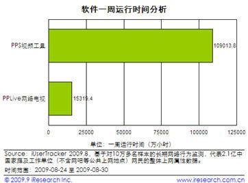 除了用戶覆蓋量,廣告主關(guān)心的莫過于網(wǎng)站的用戶黏性及用戶活躍度了!反應(yīng)這些情況的一個(gè)重要指標(biāo)就是軟件運(yùn)行時(shí)間。以艾瑞的“軟件一周運(yùn)行時(shí)間分析”指標(biāo)來看,PPS網(wǎng)絡(luò)電視達(dá)到109013.8萬小時(shí),行業(yè)排名第二的軟件運(yùn)行時(shí)間僅為15319.4萬小時(shí),此項(xiàng)數(shù)據(jù)PPS領(lǐng)先第二名更是達(dá)到了7倍之巨。一方面,軟件運(yùn)行時(shí)長(zhǎng)反映出用戶在其平臺(tái)上獲取的內(nèi)容更多;另一方面也折射出PPS客戶端豐富的內(nèi)容與流暢清晰的視聽體驗(yàn)讓其海量的終端用戶“欲罷不能”。
