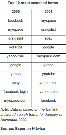 2009年10大流行搜索關(guān)鍵詞 Facebook居首