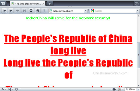 這家被“黑”的伊朗網(wǎng)站是一所教育機(jī)構(gòu),網(wǎng)址為iribu.ir。按照“中國互聯(lián)網(wǎng)觀察”的說法,百度被黑事件發(fā)生后不久,這家機(jī)構(gòu)的網(wǎng)站就出現(xiàn)了黑屏,屏幕中央還出現(xiàn)“中華人民共和國萬歲”的口號(hào)。